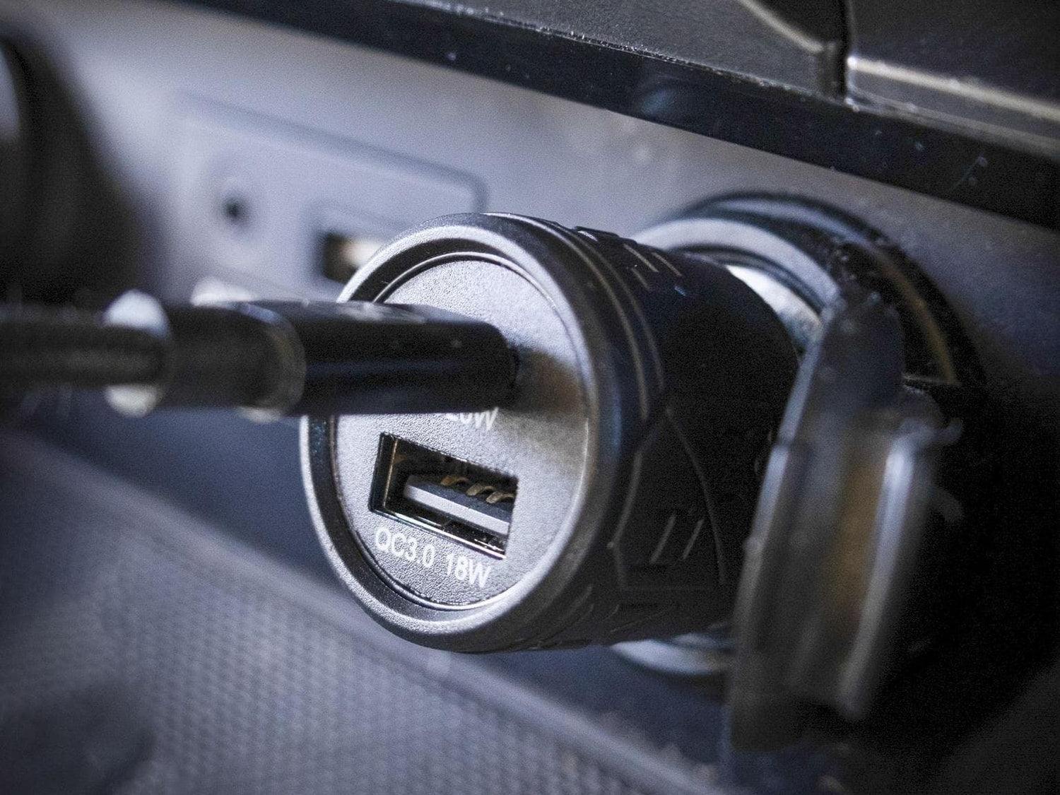Keeping your devices charged while on or off-road is just as important as keeping your vehicle tuned up. We've rebuilt our popular Dual USB Charger with an all-billet-aluminum body, and this time included a high-speed USB-C charging port along the standard Quick Charge 3.0 USB-A charging port - bringing the maximum charging capability to 38W.