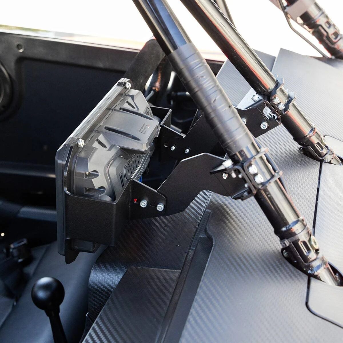 Effortlessly mount your GPS onto your Speed UTV with this bracket. Simply clamp it onto the cage bars in front of the dash for a secure and sturdy placement of your navigation device.