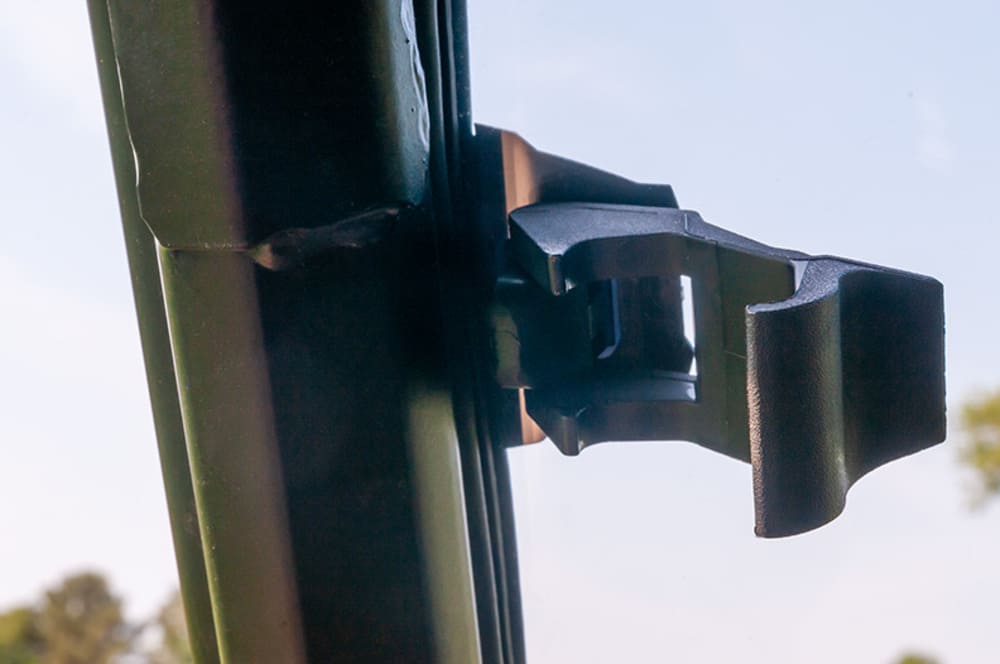 Quick Release Mounting Clamps: Building off of our popular Versa-Vent Windshield design, Seizmik’s new Toolless Mount Versa-Vent Hard Coated Windshield now features our new quick connect mounting system. Simply take the completely assembled windshield out of the box and equip your vehicle with a full, vented windshield in a matter of seconds.