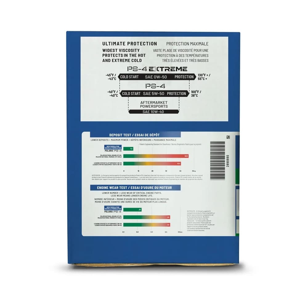 - Outstanding Protection and Proven Performance: PS-4 provides a unique wide 5W-50 viscosity range for high and low temperature engine protection and performance in ambient temperatures of -40°F to 100°F, extending the life of your Polaris engine.