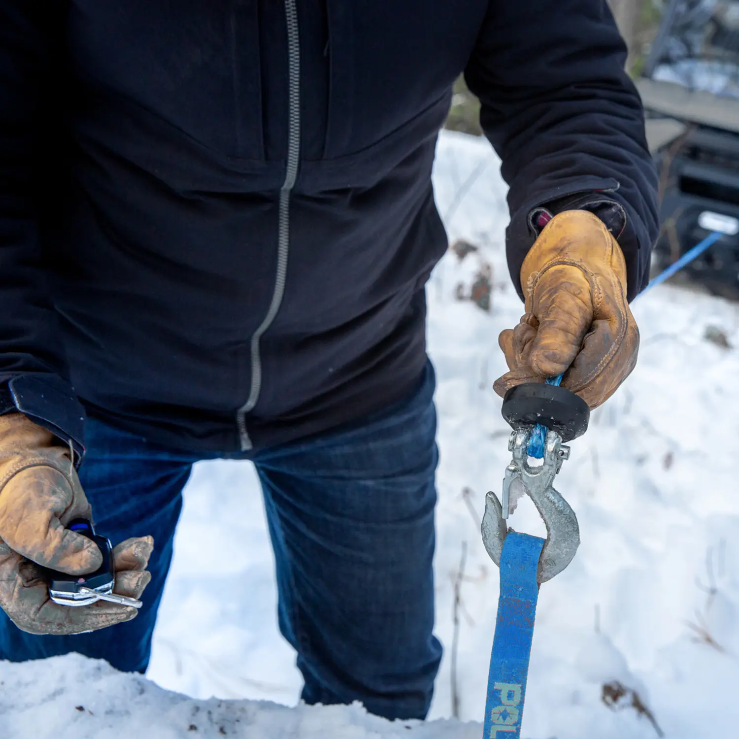 The 50 ft synthetic rope is durable, high-strength, lighter and more flexible than steel cable, which makes handling easier in tight spaces and cold conditions. It also floats, simplifying water recoveries and hookups in creeks, ponds and snowmelt.