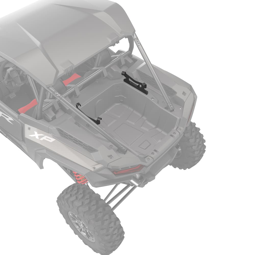 Secure your 30 Quart NorthStar cooler to your RZR XP 1000 or RZR XP 4 1000 to take your food or beverages with you on your next adventure. This bracket quickly and securely attaches your cooler to the bed of your RZR using the included Lock & Ride mounts. The cooler can be opened with the brackets in place.