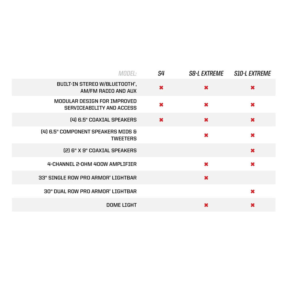 - Other Specifications: RZR Stereo, 4 x 6.5” high-efficiency coaxial speakers, 1 x USB / 3.5mm aux port