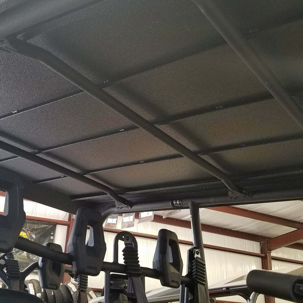 Yamaha Viking 6 crew metal roof is here! A true one-piece metal top for the Viking VI UTV. We were the first to offer a metal one-piece top for the Viking's. The reason we are first, and you're probably asking why didn't anyone else make it or why is there still only a couple companies making metal tops for them? It's NOT because the Viking isn't popular! Yamaha made the Viking UTV's frame wider than ANY other UTV on the market to accommodate the 6 individual passenger seat(s) arrangement. Available sheets of metal to accommodate are usually 5' x 10'. Well, the Viking needs a few inches wider at 62" being the widest over-head roll-frame width. It was a headache that we had no choice, but to address. It would not have been a problem if we did a two-piece metal roof, but we ran in the opposite direction of the two-piece designs back in early 2014.