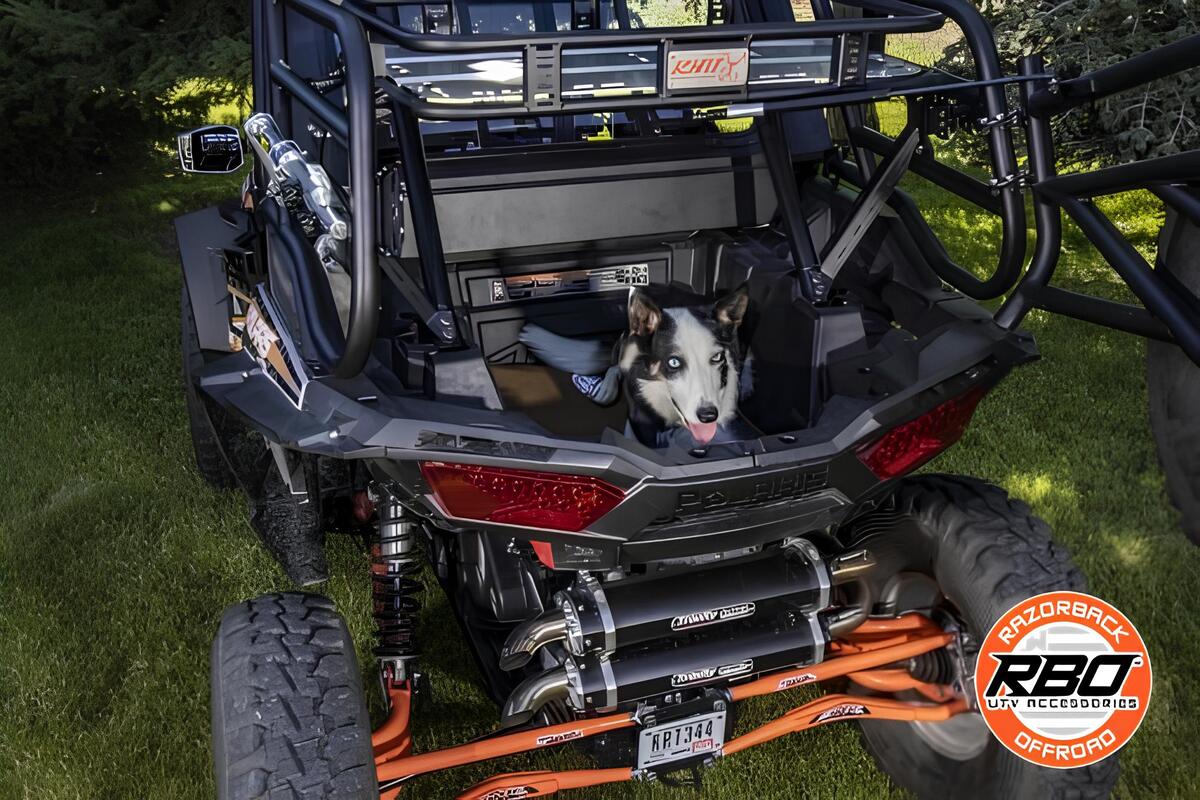 A Protective Pet Pad UTV Accessory for the Polaris RZR 1000: Off-road dog-lovers now have a solution for keeping their pets cool with this protective pet pad UTV accessory from RazorBack Offroad™! The staff here at RBO is very proud to offer our Ruff Rider Padded Heat Shield for the RZR1000. This passion comes from our love of animals and the joy that we get from sharing our Side X Sides with them. Two years ago, we started trying to figure out a way to reduce the extreme heat generated in the bed of our Side X Sides.