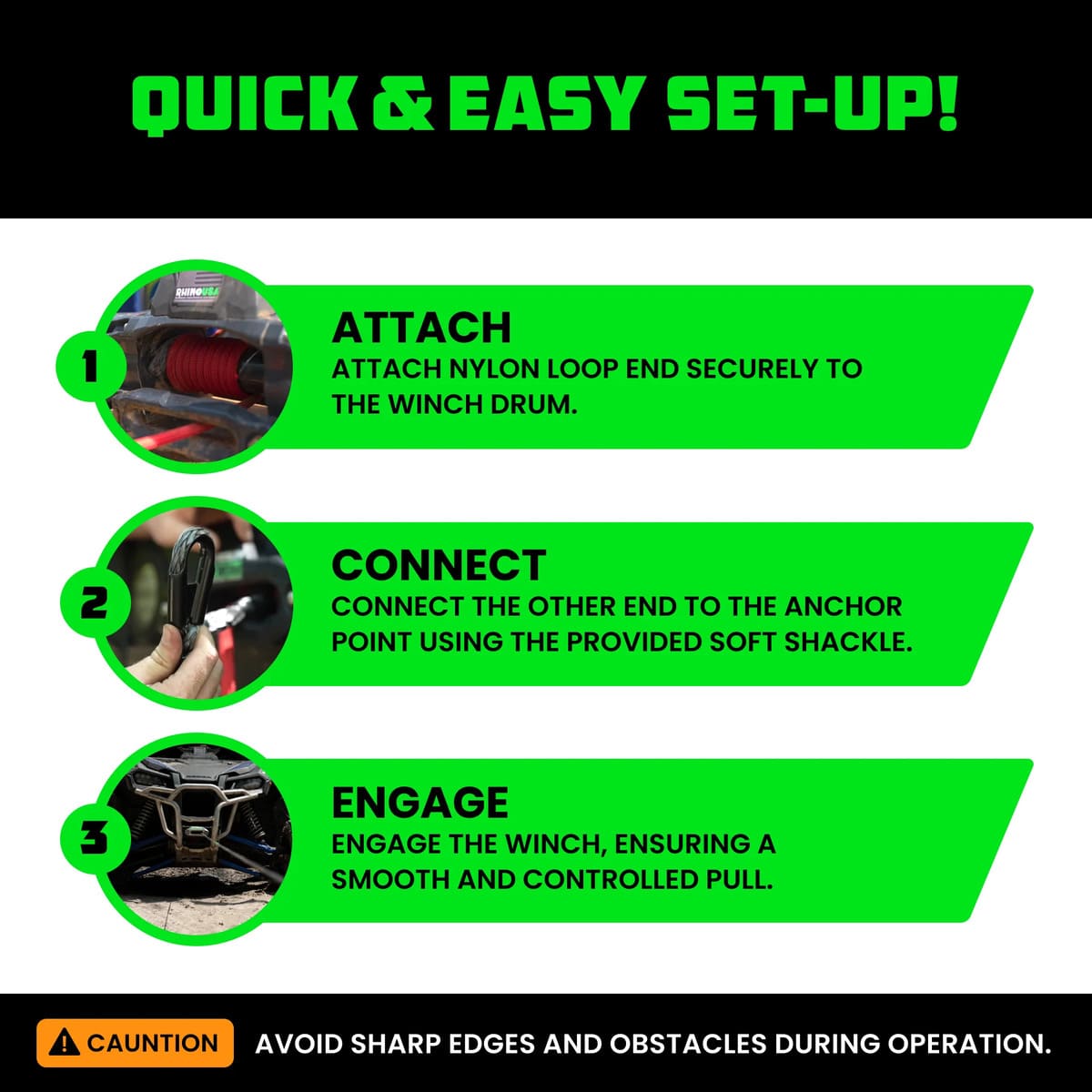 Confidence & Peace of Mind: When you're off-roading, having reliable equipment is crucial. The Rhino USA Synthetic Winch Line gives you the confidence and peace of mind to tackle any situation. With its high-quality construction and exceptional strength, you can trust this winch line to perform when you need it most. Equip your vehicle with Rhino USA's synthetic winch line and be prepared for any recovery scenario.