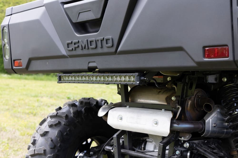 COMMAND THE DARK with Rough Country’s Rear-Facing Lower 20-inch Single-Row LED Kit for CF-Moto UForce models. This handy solution includes everything you need to upgrade your UForce with a 20-inch LED light bar mounted under the bed for outstanding illumination in a very convenient location.