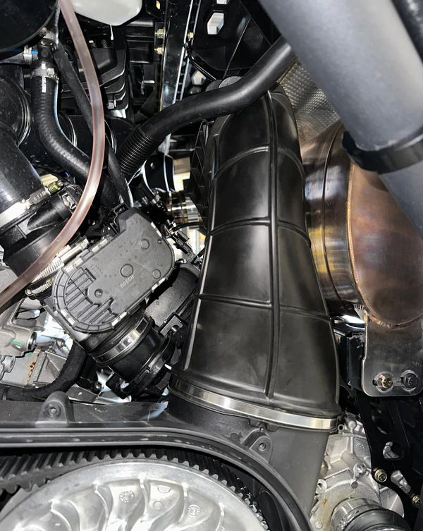 The ultimate fix to the X3's oversized, ugly, bulky, and restrictive clutch vent hose. This oversize silicone hose allows for drastically more airflow through the back side of the engine. The factory hose is so large that it restricts any airflow past and retains this heat. The SHORTY from RPM is, as pictured, drastically smaller, smoother flowing, with a larger exit snout. This is a win, win, win, product! If you're running a bed delete then aesthetically, this is a MUST.