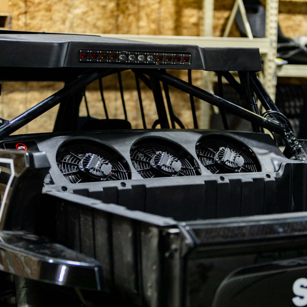 This Speed UTV Brushless Fan Upgrade kit simply works harder for less. Less overall amperage draw, less amperage spikes, less strain on the charging system, more CFM across the radiator and cooler operating temps. These brushless fans draw more air than the OEM fan while simply working the charging system less. Mounting is straightforward and acts as a drop in unit on all Speed UTVs. No wiring, No cutting, Simply remove the stock units, and bolt these in place.