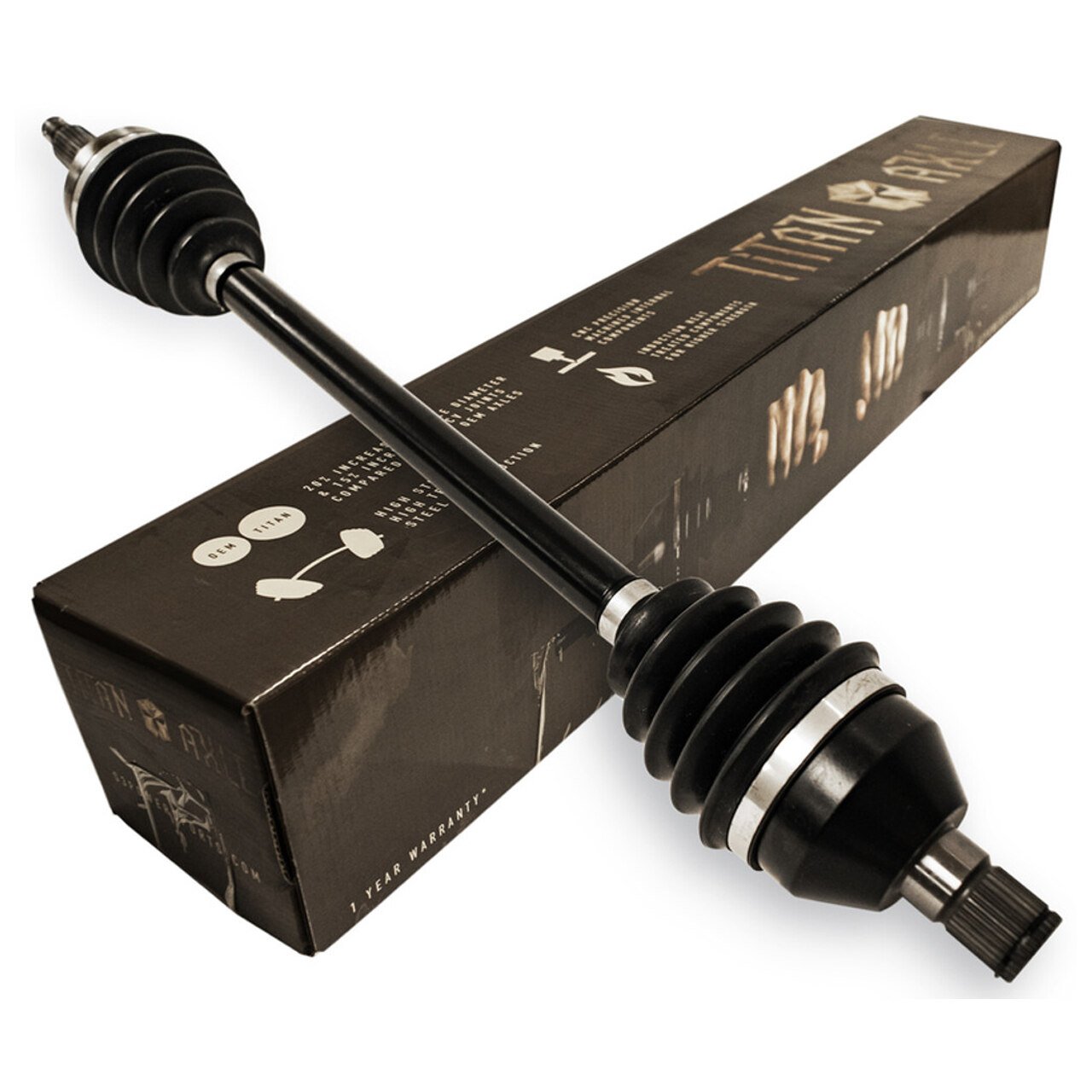 S3 Power Sports Titan Axles for the Polaris RZR XP Turbo S are built out of the highest quality material and heat treated to ensure you are getting the strongest possible axle at an affordable price. With a 20% larger axle bar and 15% larger CVs than most OEM axles, you can rely on Titan Axles to offer a significant strength advantage over factory Polaris RZR XP Turbo S axles. The CNC machined internals and induction heat treated components offer reduced operating temperatures and wear while the axles are running under higher angles or at maximum speeds. Titan Polaris RZR XP Turbo S Axles are engineered and tested to operate at larger swing angles than most and are strong enough to hold up to the largest and most aggressive mud tires on the market.