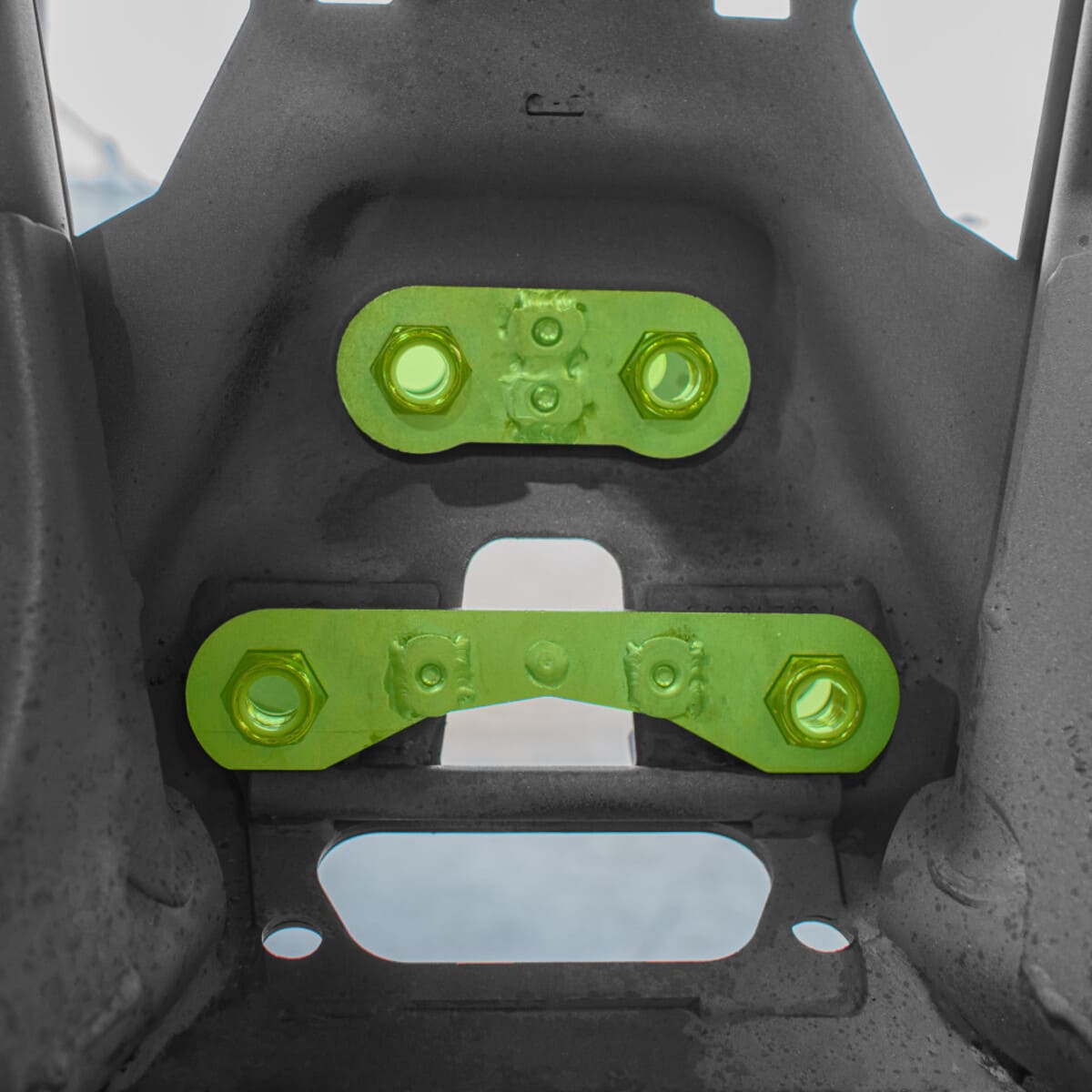 Replace the factory radius rod mounting hardware with our S3 Power Sports Radius Nut Retainers! With this kit you will eliminate the concern of stock hardware breaking loose and spinning when removing or servicing your radius rods. The integrated nut retainers eliminate spin by "locking" the nuts in place, keeping them tight, and making it impossible for them to loosen. The design of the S3 Power Sports Radius Nut Retainer also allows you to easily remove and replace the nuts if needed in the future. This bolt-on kit installs easily and is a valuable addition to your 2024+ Can-Am Maverick R, ensuring you spend more time on the trails.