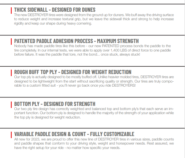 The new DESTROYER tires were designed from the ground up for duners. We buff away the driving surface