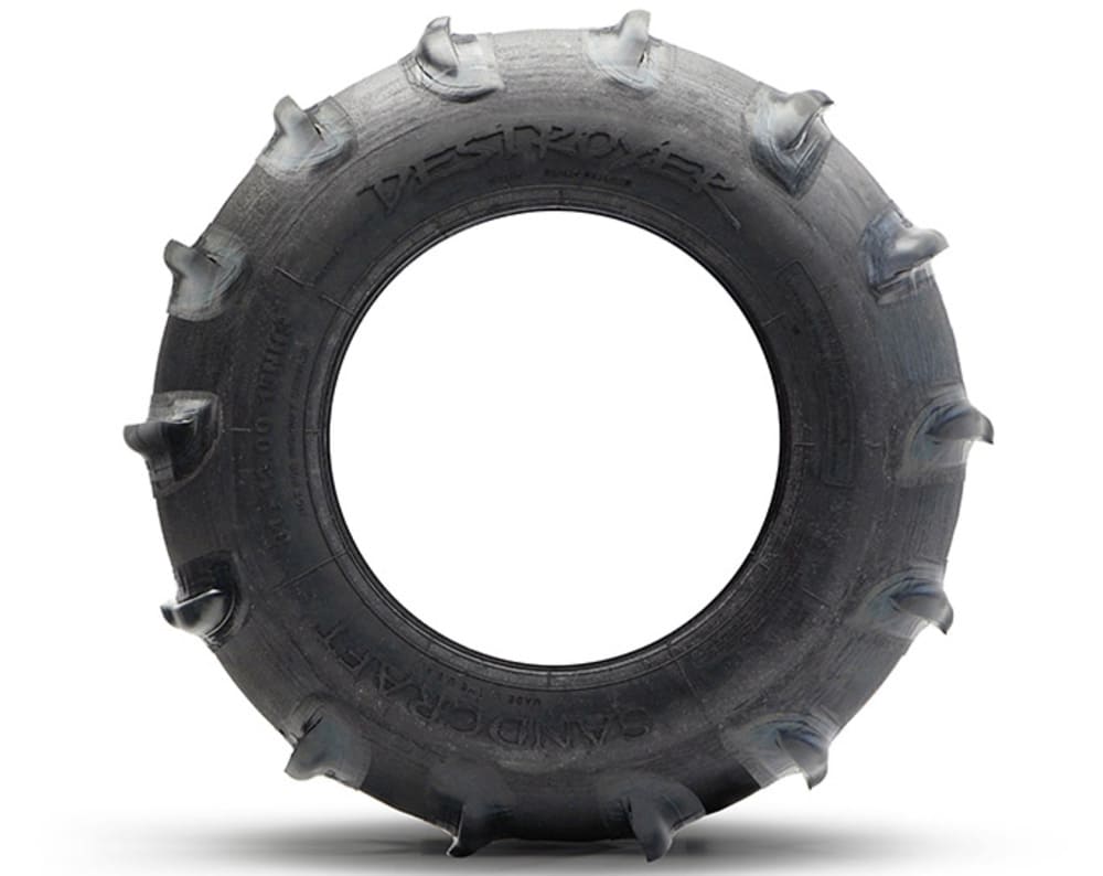 Sandcraft Destroyer – Sliders: Sandcraft Destroyer tires have undergone a complete paddle and carcass redesign for 2023. Our most exciting patented paddle in the Destroyer lineup is the SLIDER. This innovative design features a new stepped alternating paddle design, a first of its kind in the industry. With 1” of height across two thirds of the 13” width, then dips to 1/2” on the final third. This design is then flipped on alternating paddles. We call these Sliders for a reason! This design breaks traction more easily and is ideal for the driver who loves allowing the rear end of the car to play more freely across the sand.