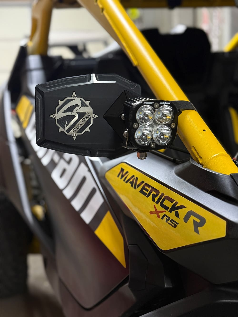 Finally, high quality UTV side-view mirrors with a large viewing window that stays vibration-free while running the trails. These are equipped with Threaded Mounts for securing to a custom roll cage mount without using a clamp. The large Convex Glass Mirrors provide more than 2.5X field of view over other mirrors on the market. The two-piece adjustable Ball Tensioners allow for smooth mirror adjustments, and an ultra-secure hold at the highest speeds in the harshest bumps. Steel Light Brackets will hold your favorite Lighting Pods.