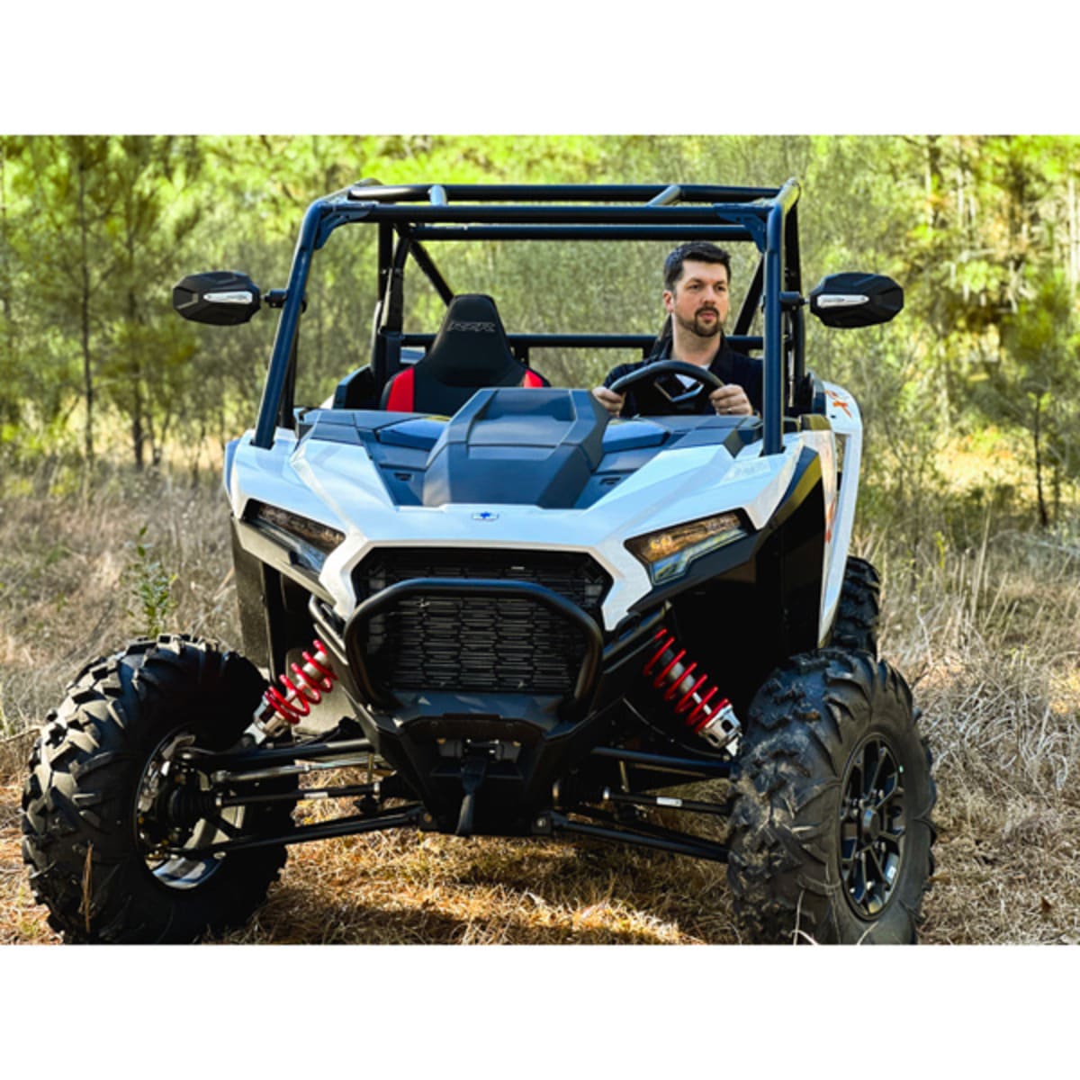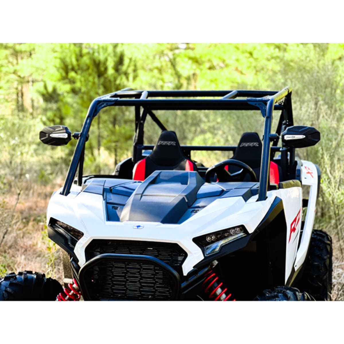 The new ball joint and low profile clamp allow for a wide range of motion and break away feature, and accommodates the various A-pillar angles created by OEM or custom cages. Clamp sizes available will accommodate most any UTV: 1.75” round tube ROPS; 2” round tube with included shims for 1.875” round tube ROPS; and Polaris Pro-Fit or Can-Am Profiled ROPS.