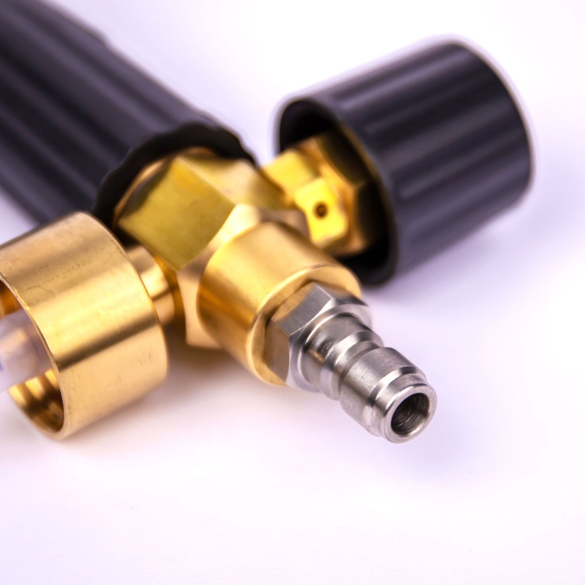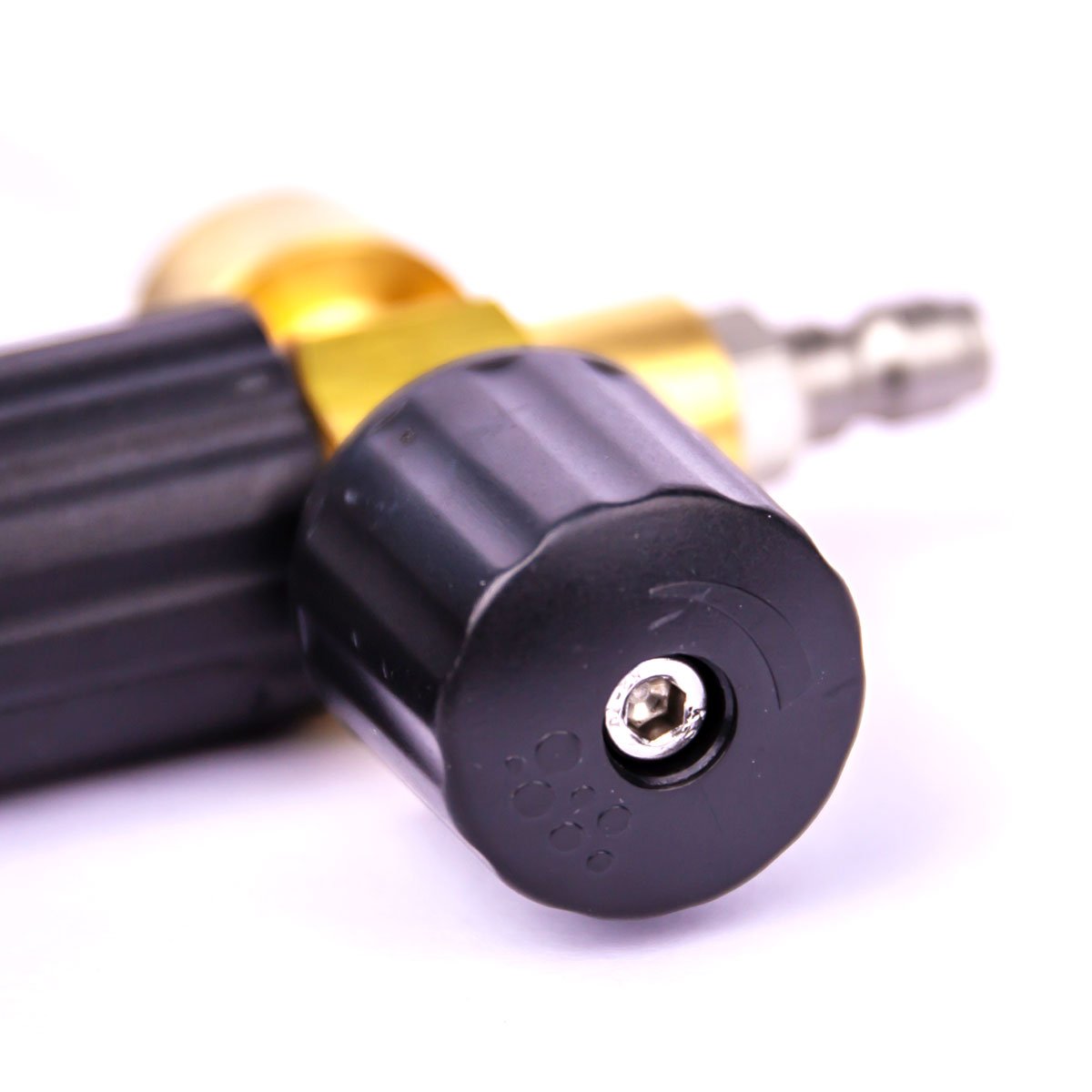 Durable Foam Cannon attaches to pressure washer wand with the 1/4" quick connect inlet and designed to quickly mix our concentrated soap into a foamy wash.