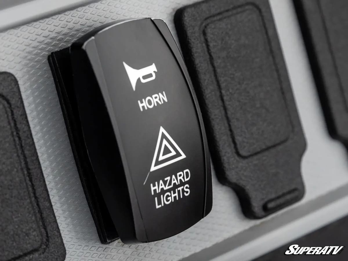 Horn and Hazard Ready: This UForce 800 turn signal kit comes with two dash-mounted switches. One controls your left and right signals. The other controls the included horn and hazards. Both are backlit so you can see them clearly, even at night.