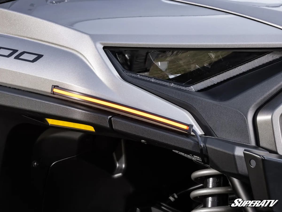 Uses Your Stock Rear Lights as Signals: You get four amber LEDs up front—two for each corner—so other riders see you from any angle. In the rear, the kit uses your UForce 800’s original taillights to keep it simple and looking slick.
