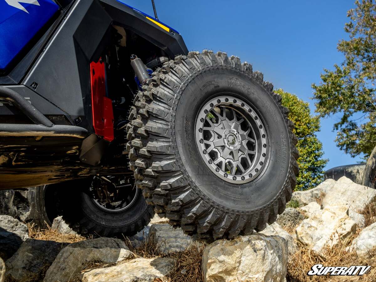 Lightweight Design Engineered for Extreme Rides: These beadlock wheels are built to go wherever you want. The aluminum alloy construction and double-spoke design give them a 1,400-pound load rating even thought they’re only 18.8 pounds each. That means you can load your machine up and hit the trail hard. Plus, the center cap bolts on, so it won’t come off easily.