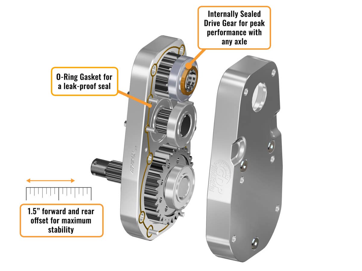 - Cool, quiet, precision ground gears made from 9310 alloy billet steel