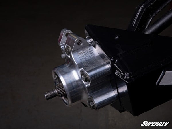These spindles work with any suspension you’ve got whether it’s stock, SuperATV, or anything else. It’s also compatible with your stock wheel bearing for easy service and replacement. It matches stock geometry perfectly so you can simply bolt it up and ride. We also eliminated unnecessary material to give it more clearance for your suspension. You get a smooth installation and a smooth ride.