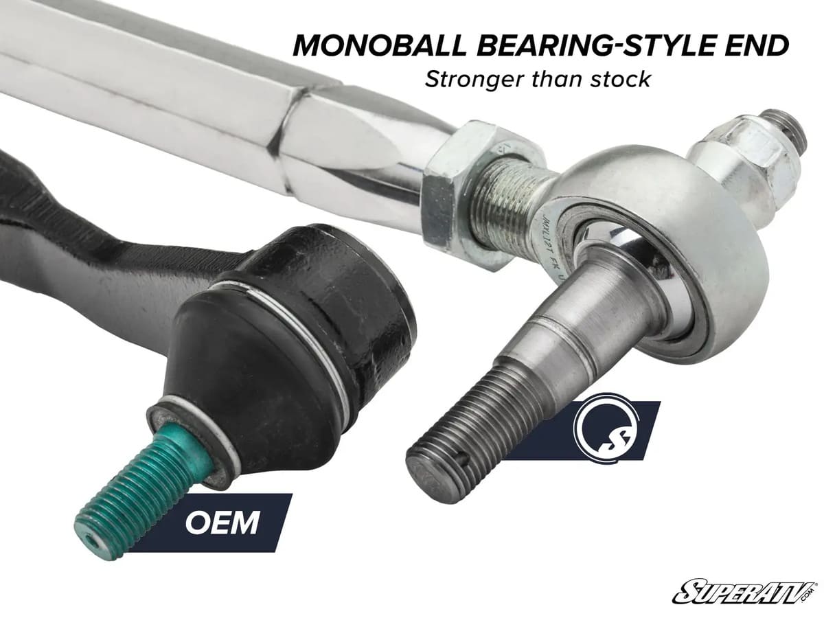 Swaged Tube Tie Rods: Our steel swaged tube tie rods are lightweight but strong. Our swaged design significantly improves the strength of the 7/8” diameter tubing. They feature inner ball and sockets along that use 16 mm rack threads and 14 mm rod threads along with 14 mm outer tie rod ends. Together, they make sure the typical weak points are as strong as possible. Our swaged tie rods are perfect for the casual rider that’s tired of their stock performance.
