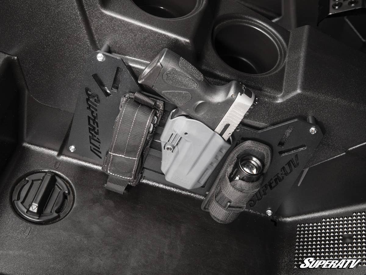 Secure, accessible storage is hard to find on most side-by-sides. At least it was before now. Get SuperATV’s Universal Rigid Molle Panel for UTVs to get a convenient mounting location for thousands of molle accessories. With several molle mount locations and two holster mounts, there’s nothing you won’t have handy on your next ride.