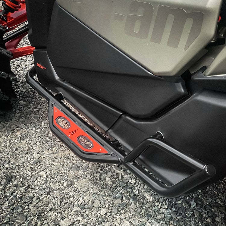If you’re looking for a nerf rail or side step that’s big, bad, and built to last, look no further than the Maverick X3 nerf rails from thumper fab. These beefy rock rails are made American made steel tubing, so you know they’re tough enough to handle whatever you throw at them. So go ahead and take on the roughest terrain - with the Maverick X3 nerf rails, you’re ready for anything.