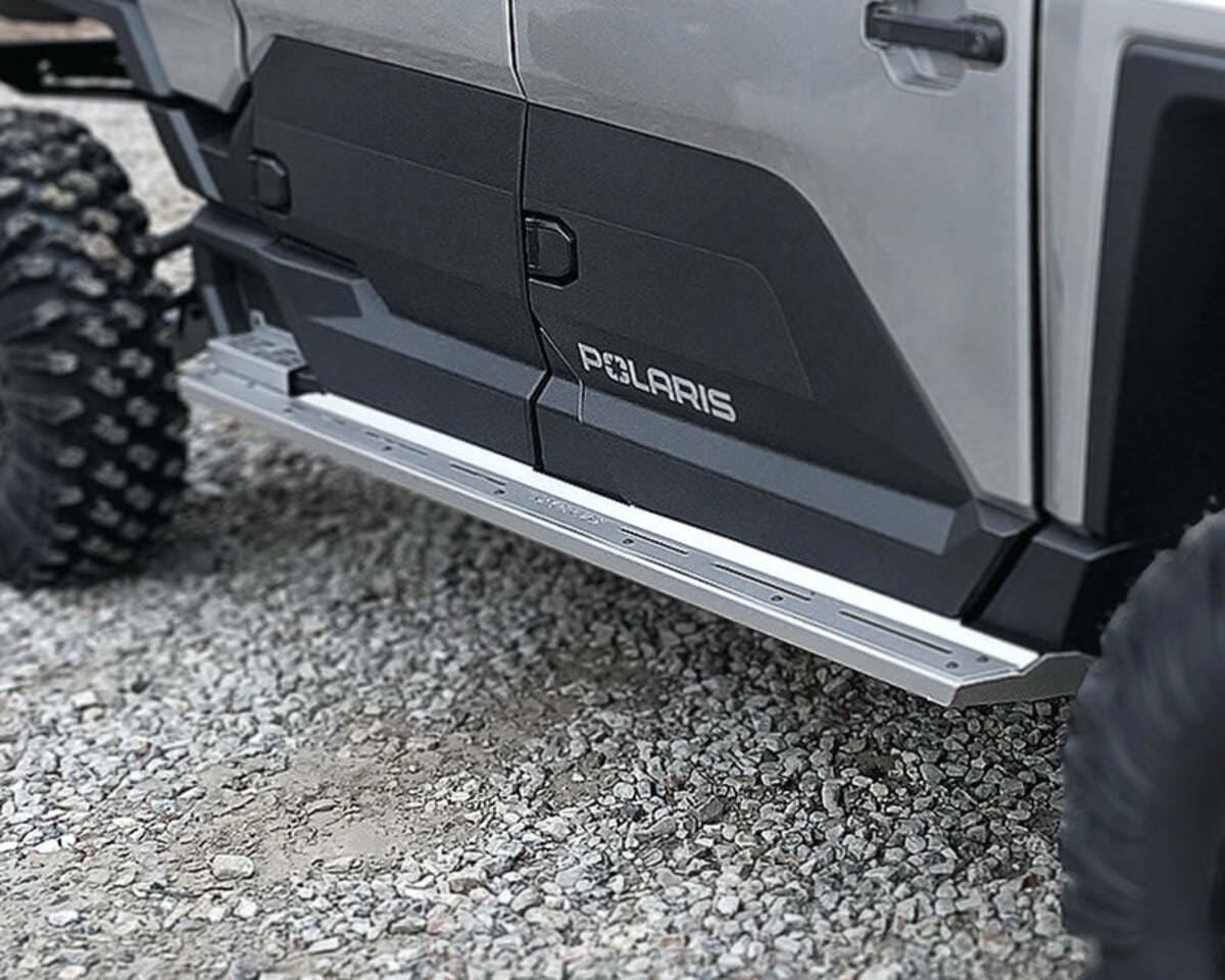 Constructed from rugged American-made steel, these Nerf Rails are engineered to withstand the toughest trails, shielding your investment from rocks, debris, and unexpected encounters. The sleek and aggressive design not only adds a distinctive flair to your ride but acts as a formidable barrier against potential damage, ensuring that your Polaris remains in pristine condition.
