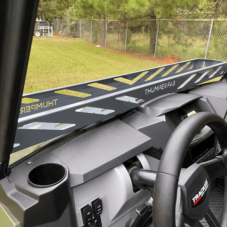 The Thumper Fab Tracker 800SX Front Basket increases the load-carrying capability. This durable, steel-constructed basket, with a powder-coated finish mounts across the hood for additional UTV storage in conjunction, helps protect your vehicle from brush and debris. The basket easily installs.