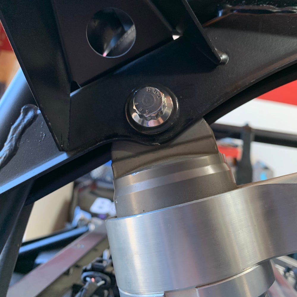 BC x TPR exclusive front and rear shock bolt kit for the Polaris RZR. Most OE cage and suspension bolts are grade 10.9 (150,800psi). ARP 300 series fasteners are rated to 190,000psi and are extremely corrosion resistant. These fasteners are approximately 25% stronger than OE bolts.