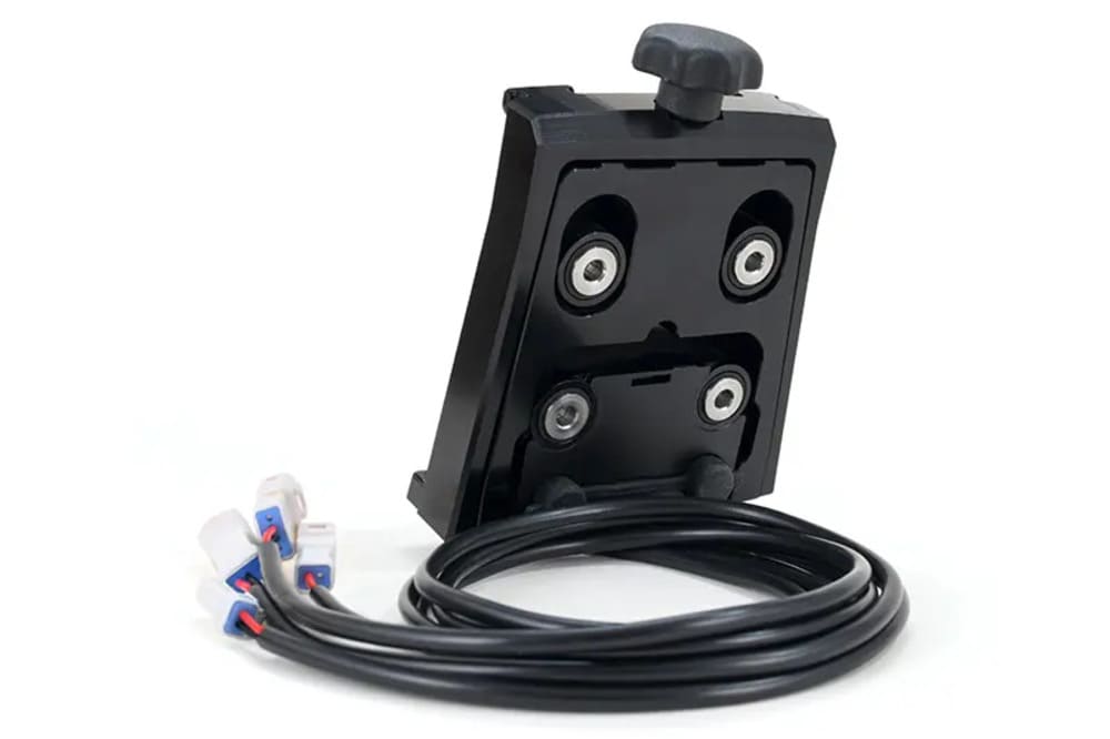 Engineered for durability. Upgrade the standard Voyager Pro dock with this premium aluminum replacement. The Extreme Aluminum Dock is machined from billet aluminum, with additional enhancements for water diversion, positive thumbscrew lock and mechanically improved pins. Hard mount with quick removal of the Voyager Pro GPS. Made to hold up even on the roughest trails.