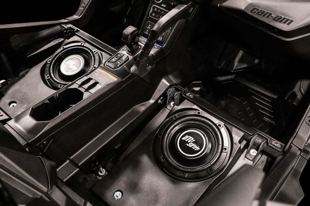 UTV Stereo has designed a 10" subwoofer enclosure compatible with the Can-Am® Maverick R Front Driver