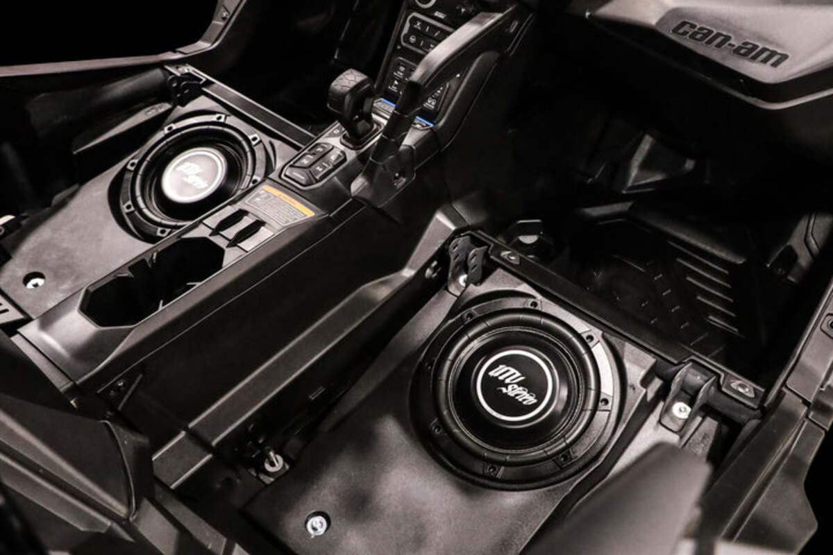 UTV Stereo has designed a 10" subwoofer enclosure compatible with the Can-Am Maverick R Front Driver