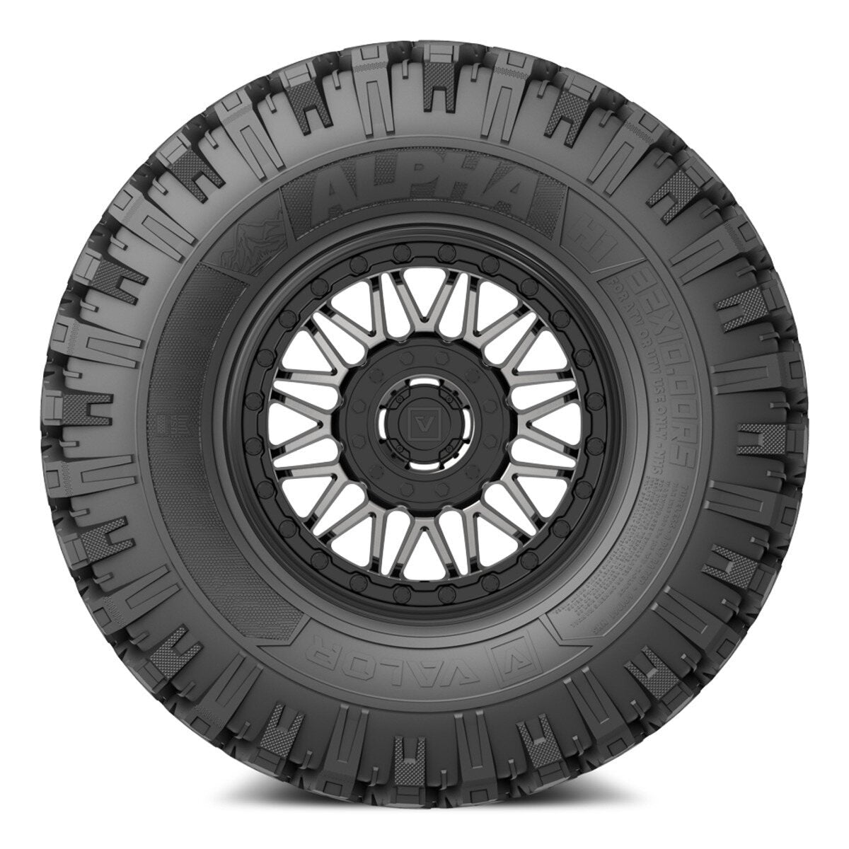 The Alpha was engineered to work perfectly with any of our valor off-road UTV wheels. The tire bead, lip thickness and wheel width were all considered during development.