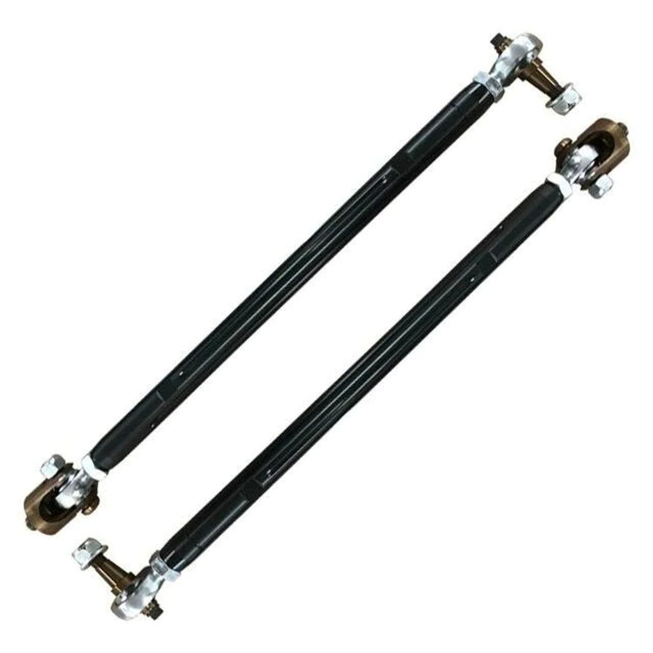This comes with 2 tie rods, ready to bolt on with all required hardware and loctite. All rod ends are JMX series which are the strongest and longest lasting we have found in all of our testings. We utilize precison misalignment spacers in-house, from high strength and corrosion resistant 416 Stainless steel.